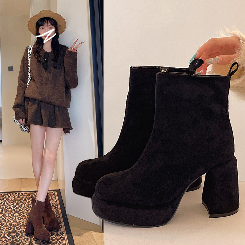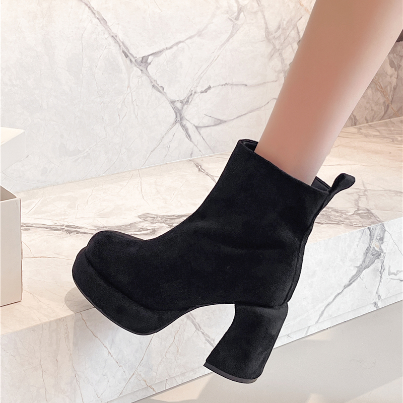 女靴子靴子韩版潮时尚保暖防滑短靴圆头粗跟