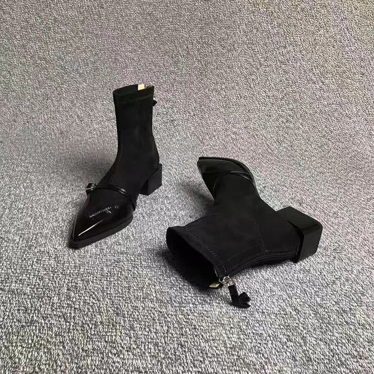 女靴子靴子韩版潮时尚保暖防滑短靴圆头粗跟
