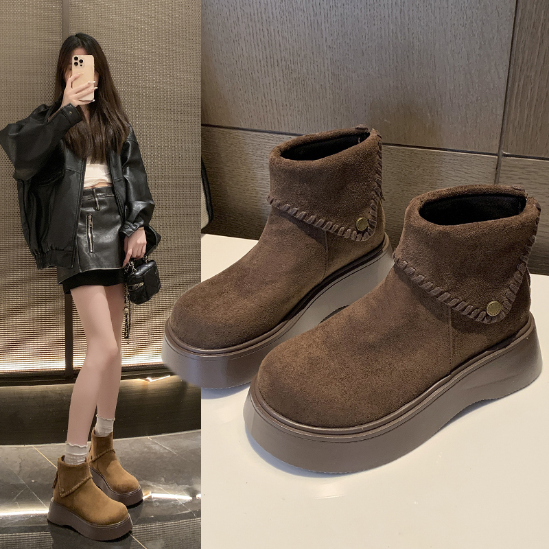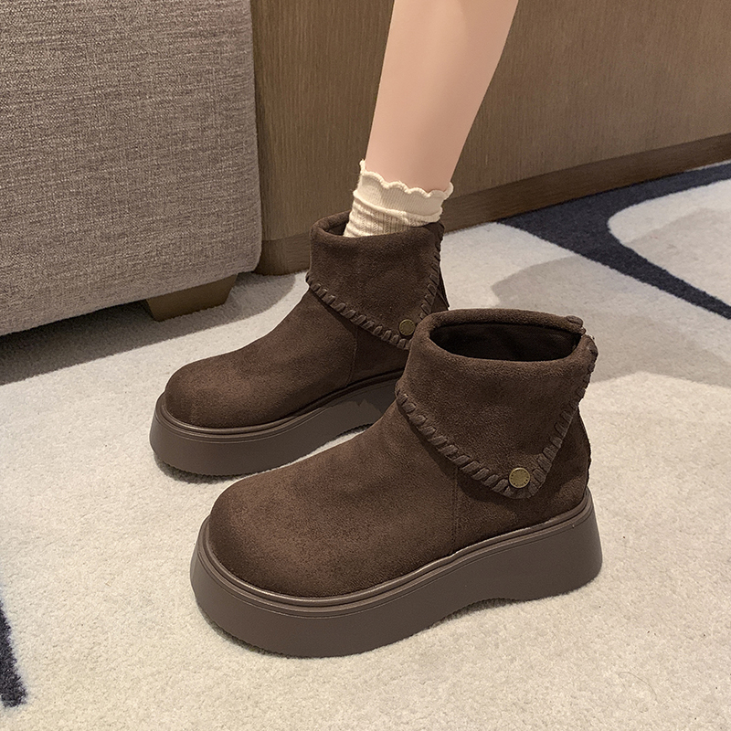 女靴子靴子韩版潮时尚保暖防滑短靴圆头粗跟