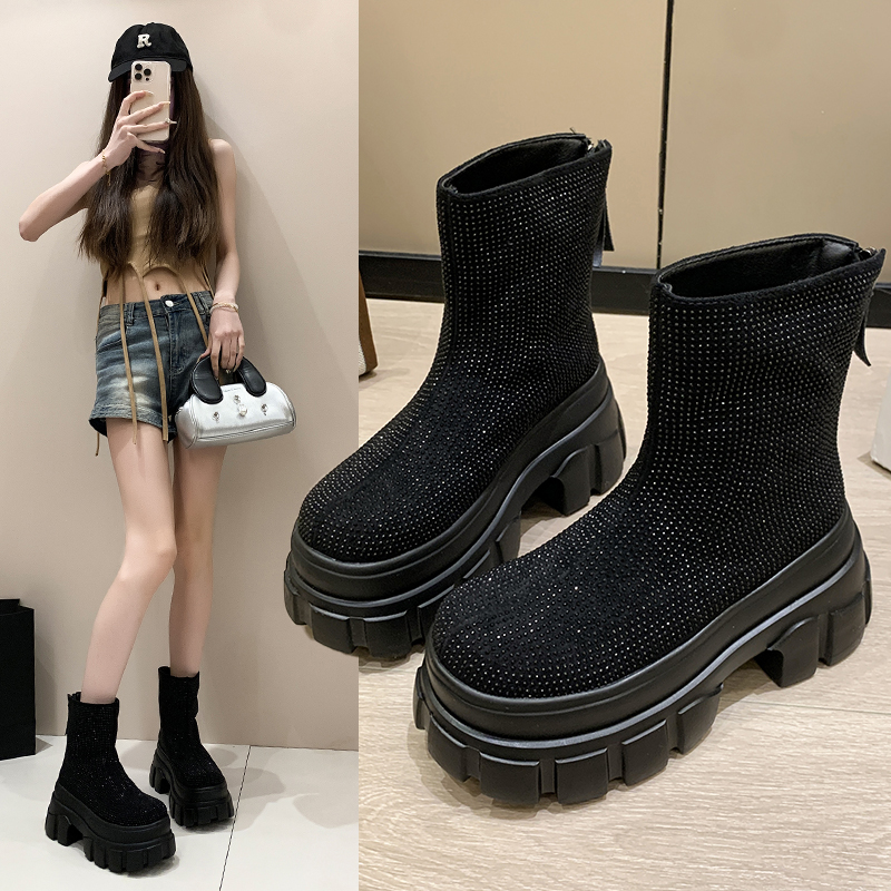 2022春季高帮鞋休闲运动鞋女鞋子单鞋高帮鞋欧美英伦时尚