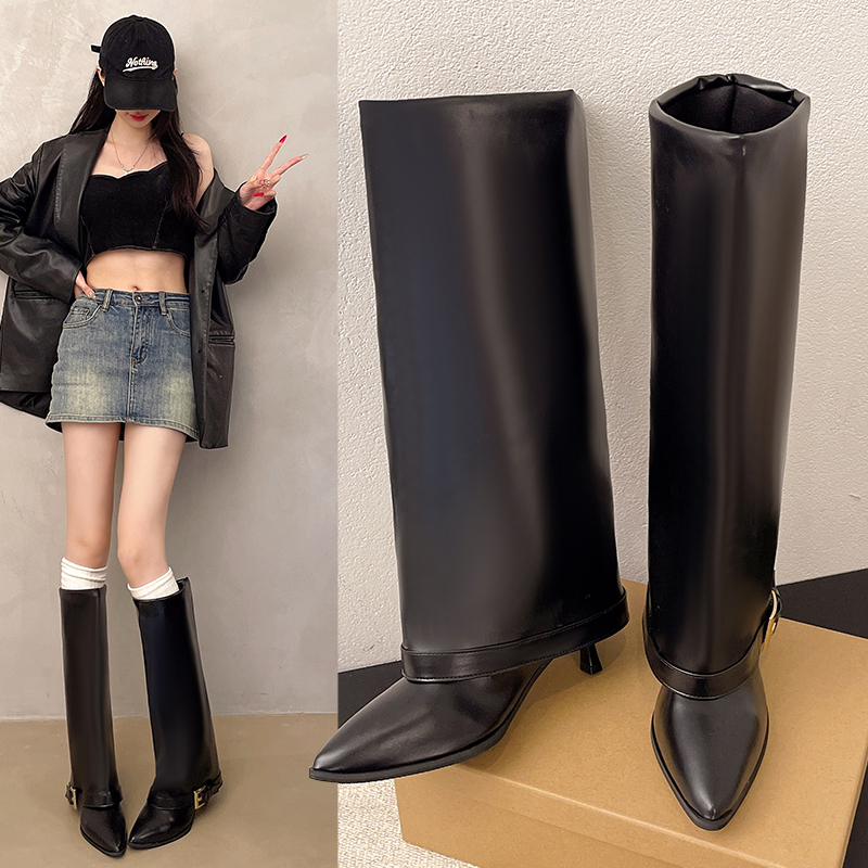 女靴子靴子韩版潮时尚保暖防滑长靴圆头粗跟