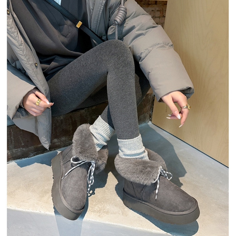 女靴子靴子韩版潮时尚保暖防滑绒面短靴圆头