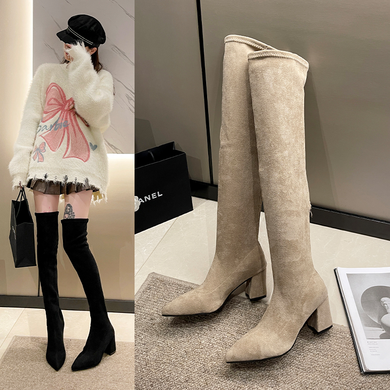 女靴子靴子韩版潮时尚保暖防滑长靴圆头粗跟