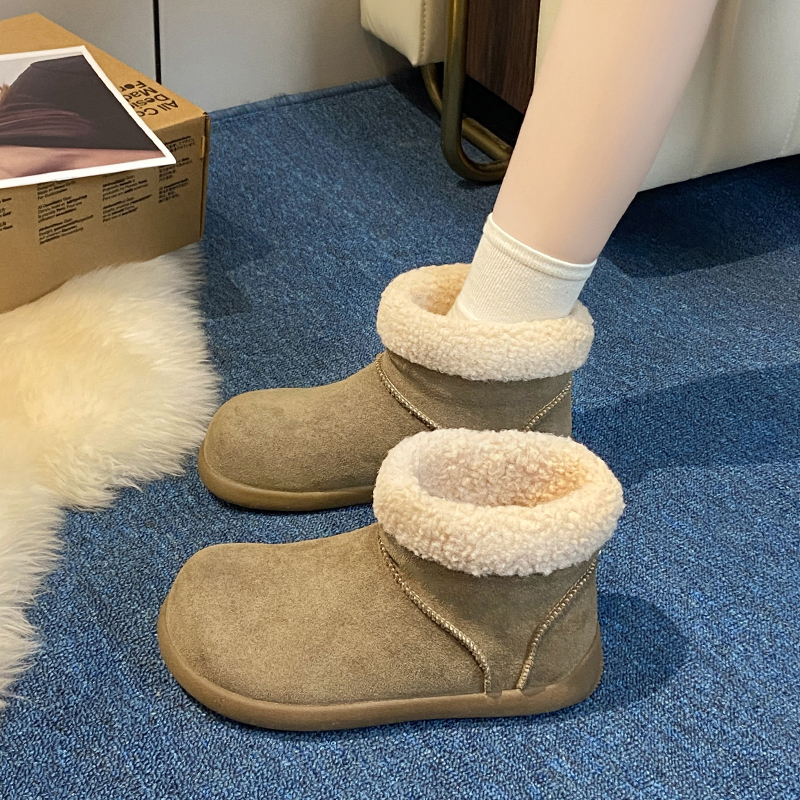 女靴子靴子韩版潮时尚保暖防滑绒面短靴圆头