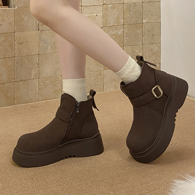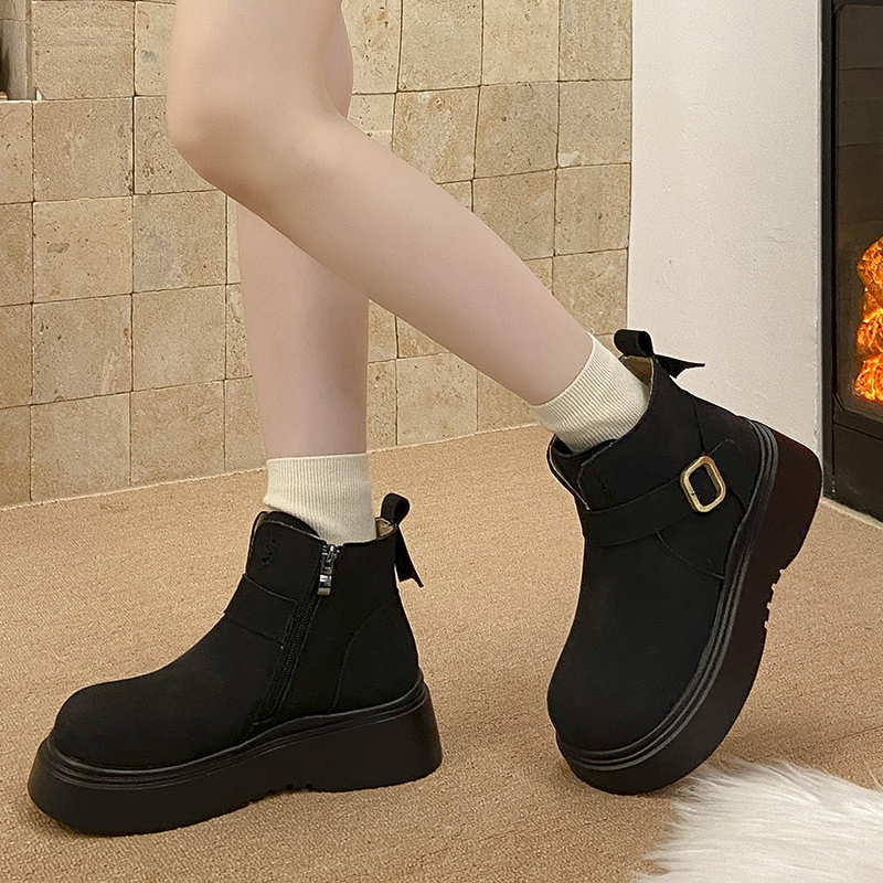 女靴子靴子韩版潮时尚保暖防滑短靴圆头粗跟