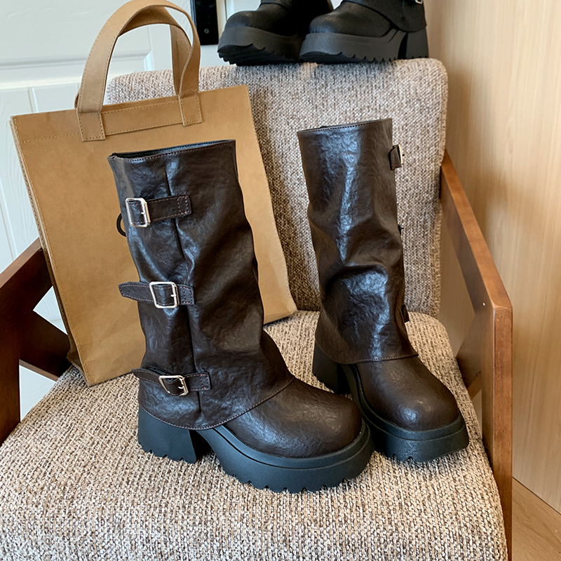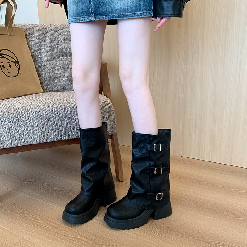 女靴子靴子韩版潮时尚保暖防滑短靴圆头粗跟