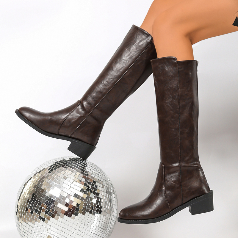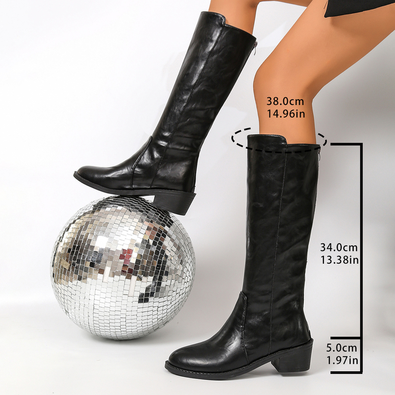 女靴子靴子韩版潮时尚保暖防滑长靴圆头粗跟