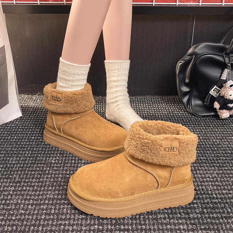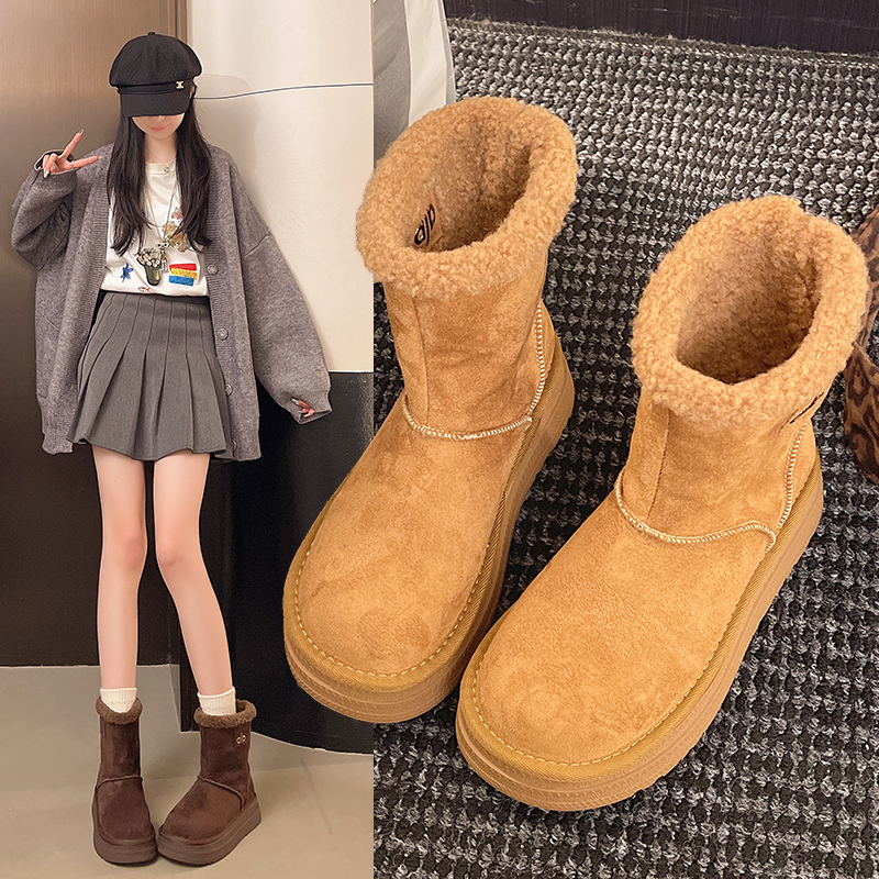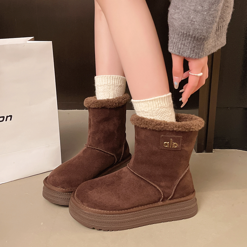 女靴子靴子韩版潮时尚保暖防滑绒面短靴圆头