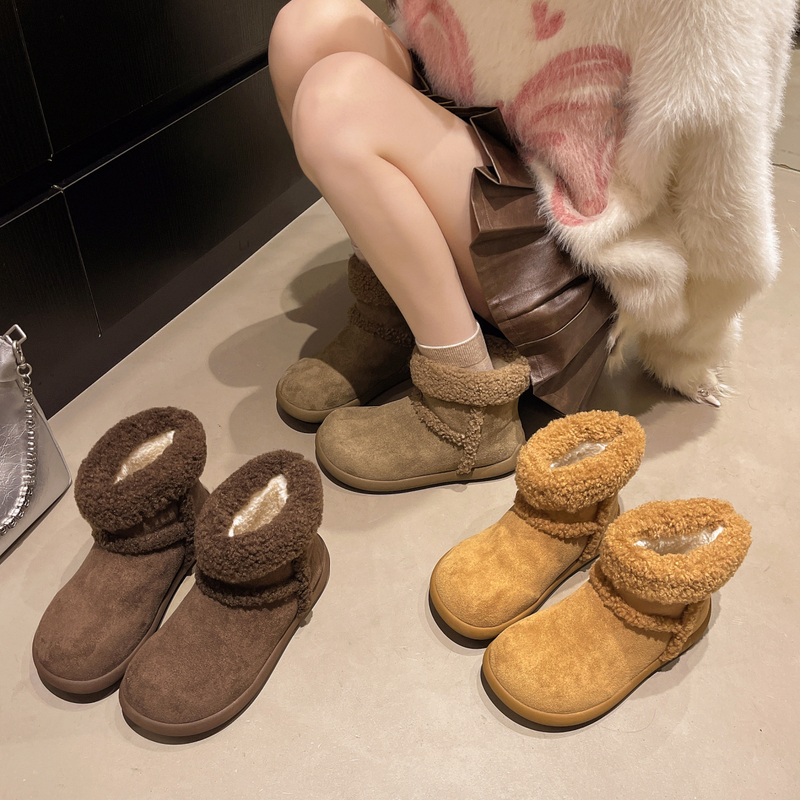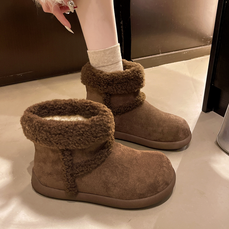 女靴子靴子韩版潮时尚保暖防滑绒面短靴圆头