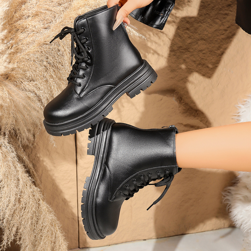 女靴子靴子韩版潮时尚保暖防滑学院短靴圆头