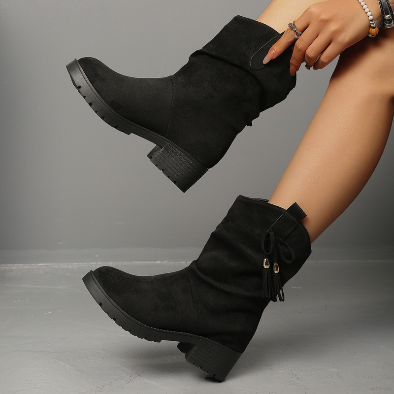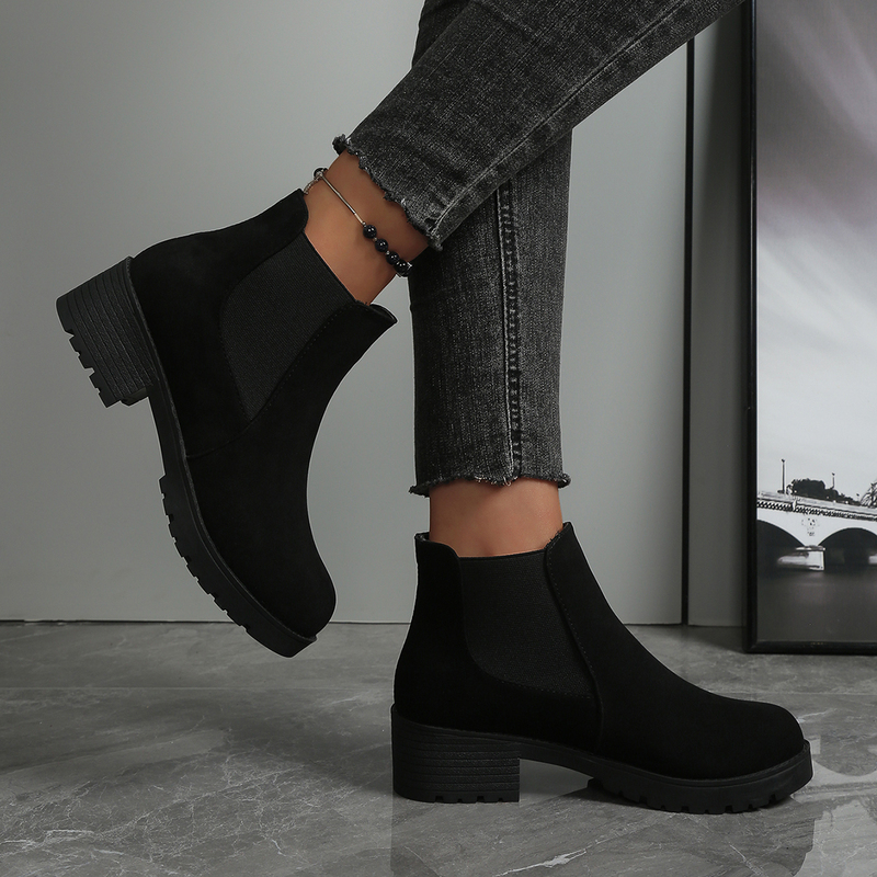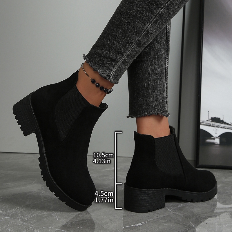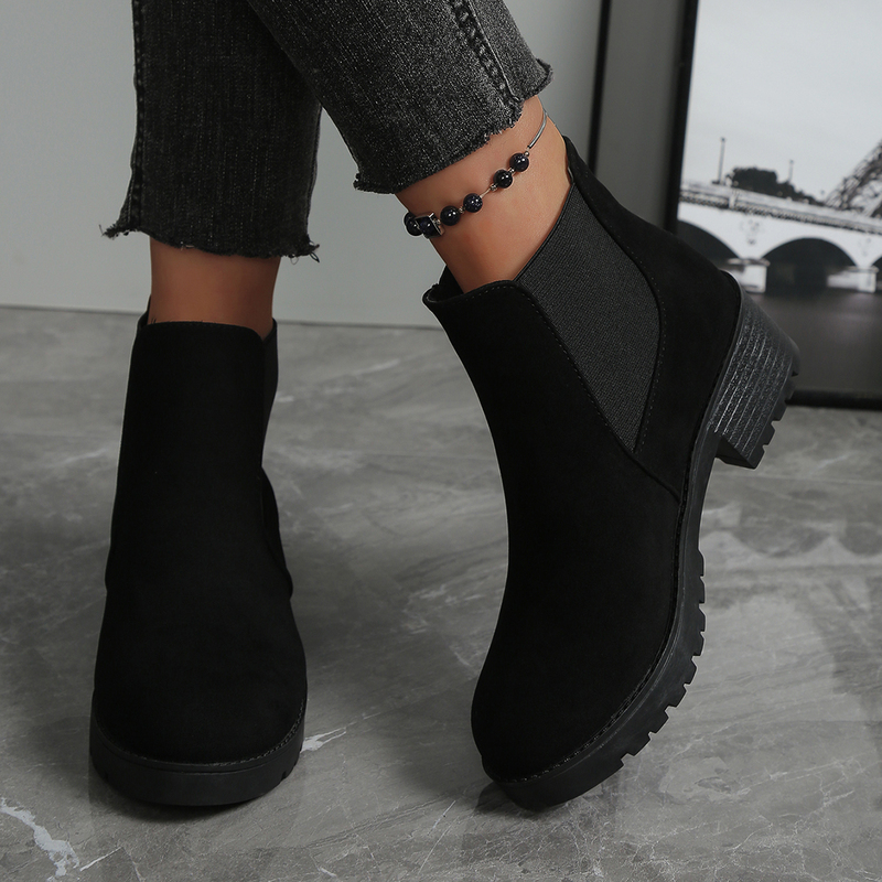 女靴子靴子韩版潮时尚保暖防滑短靴圆头粗跟