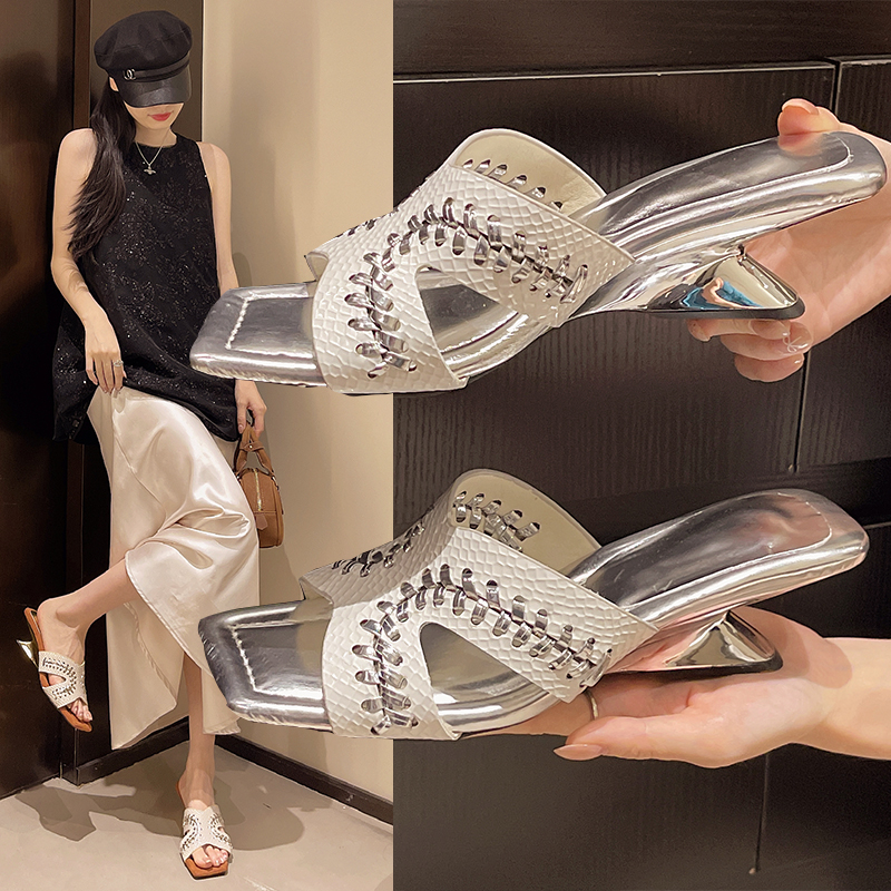 2022夏季凉拖鞋休闲鞋女鞋子拖鞋欧美英伦时尚坡跟