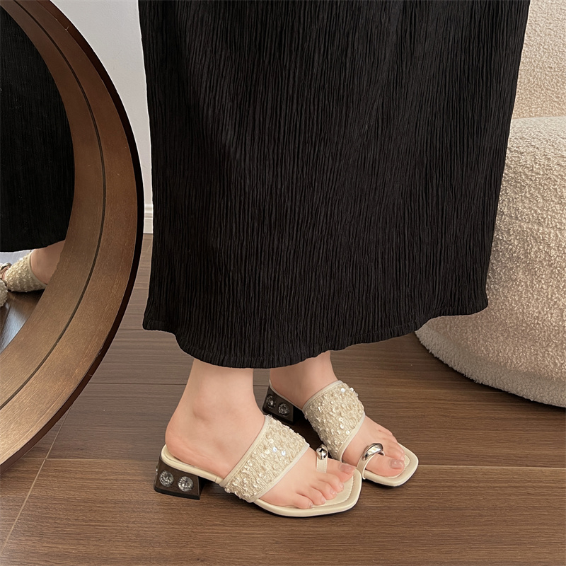 2022夏季凉拖鞋休闲鞋女鞋子拖鞋欧美英伦时尚粗跟