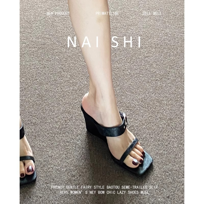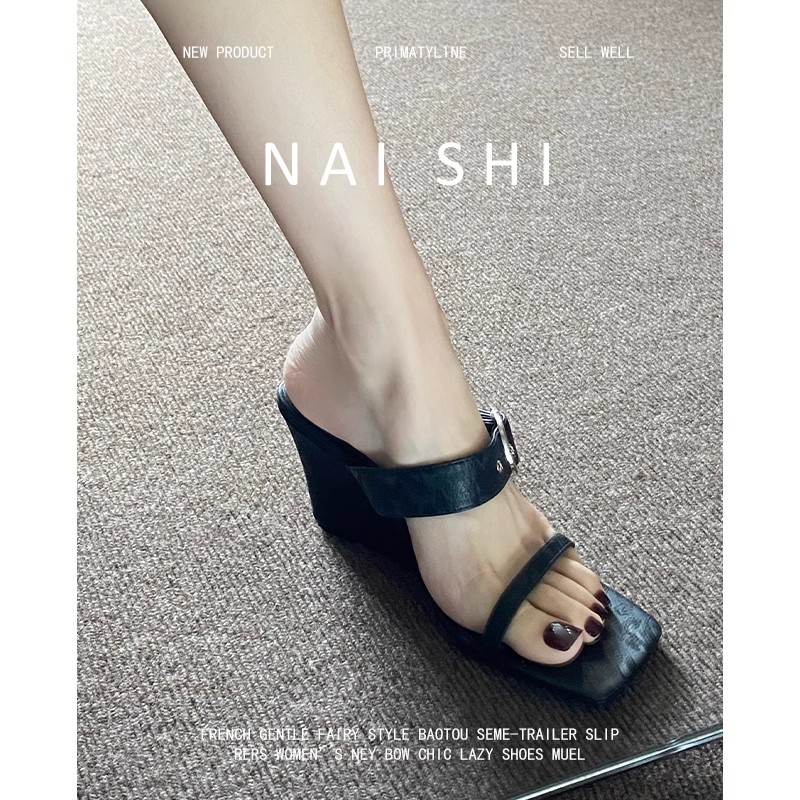 2022夏季凉拖鞋休闲鞋女鞋子拖鞋欧美英伦时尚坡跟