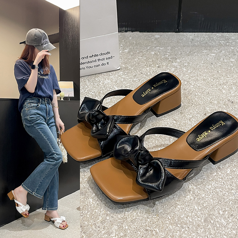 2022夏季凉拖鞋休闲鞋女鞋子拖鞋欧美英伦时尚粗跟