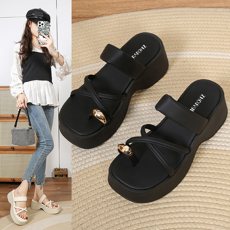 2022夏季凉拖鞋休闲鞋女鞋子拖鞋欧美英伦时尚粗跟