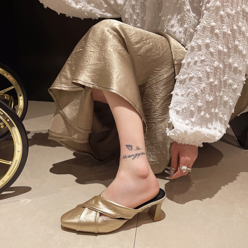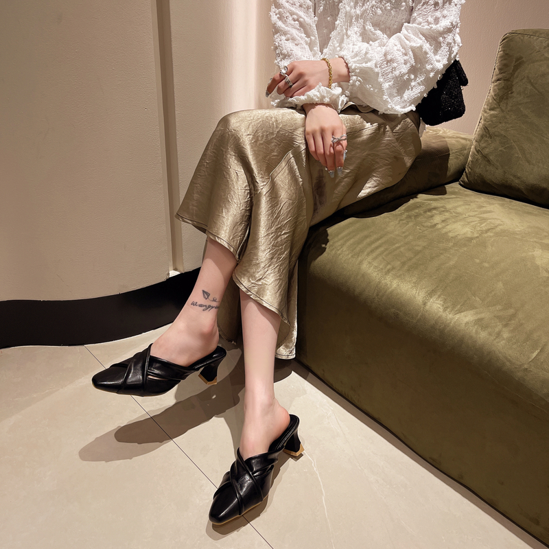 2022夏季凉拖鞋休闲鞋女鞋子拖鞋欧美英伦时尚粗跟
