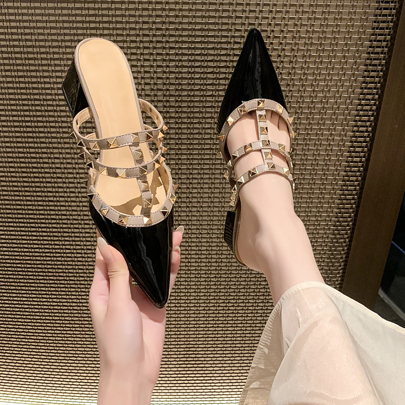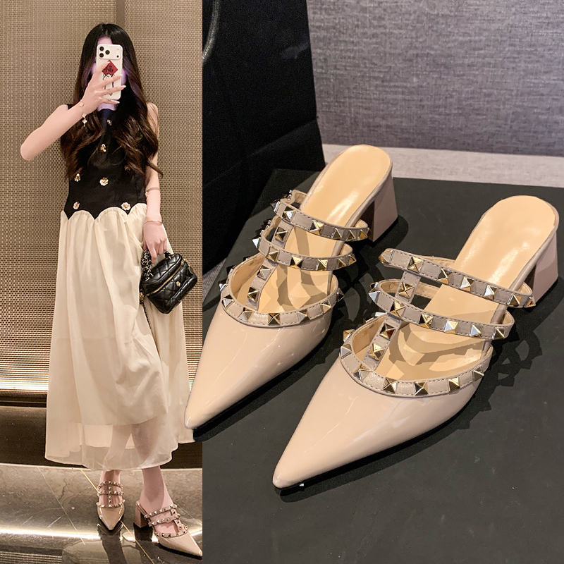 2022夏季凉拖鞋休闲鞋女鞋子拖鞋欧美英伦时尚粗跟