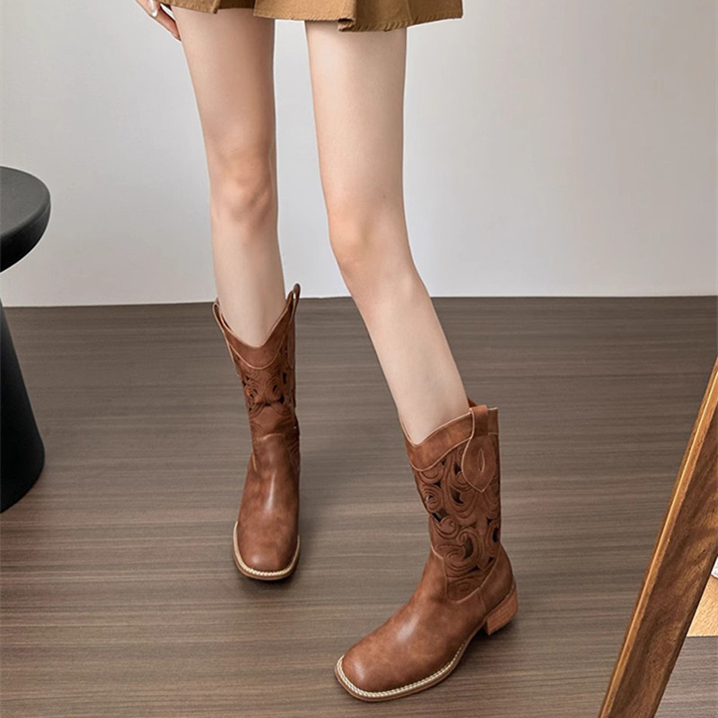 女靴子靴子韩版潮时尚保暖防滑绒面长靴圆头粗跟
