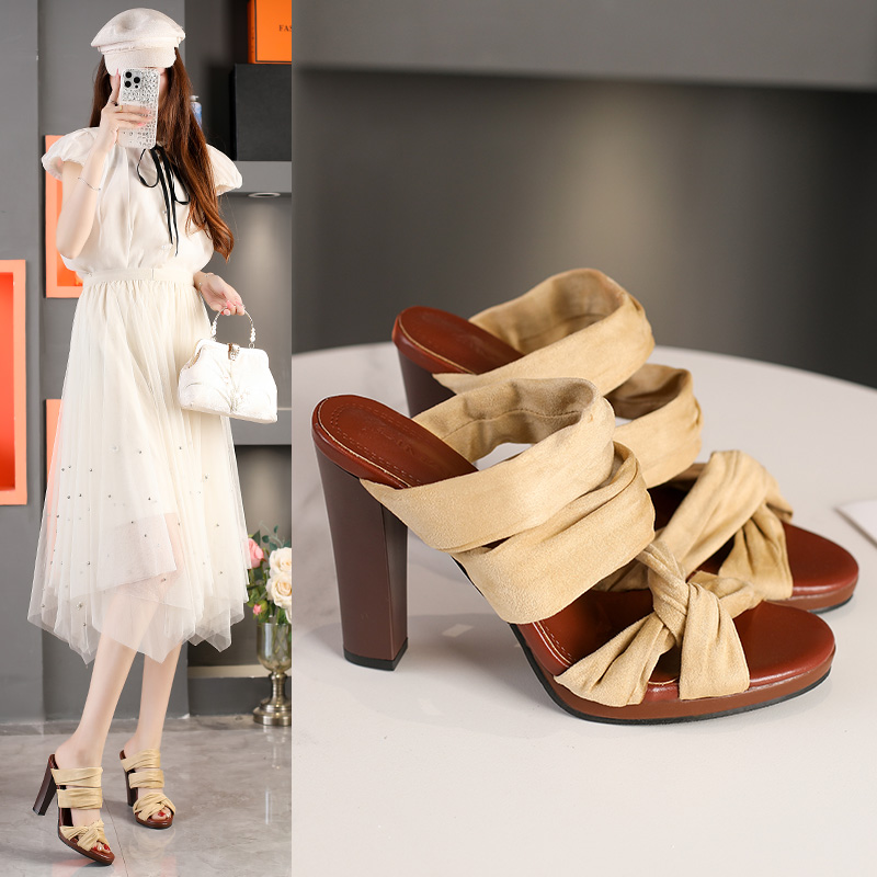 2022夏季凉拖鞋休闲鞋女鞋子拖鞋欧美英伦时尚粗跟