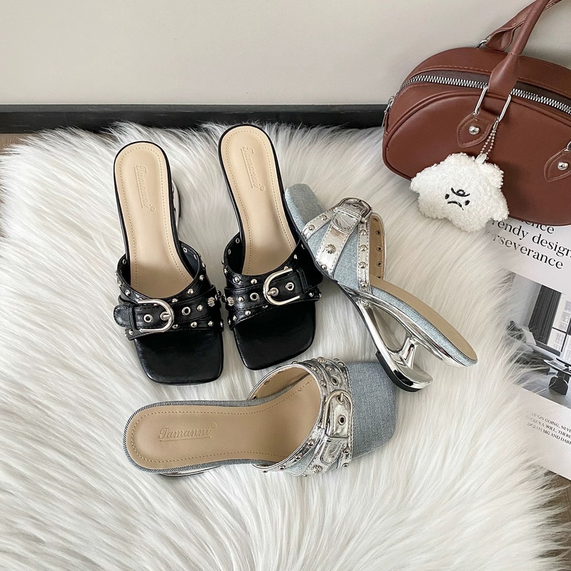 2022夏季凉拖鞋休闲鞋女鞋子拖鞋欧美英伦时尚粗跟