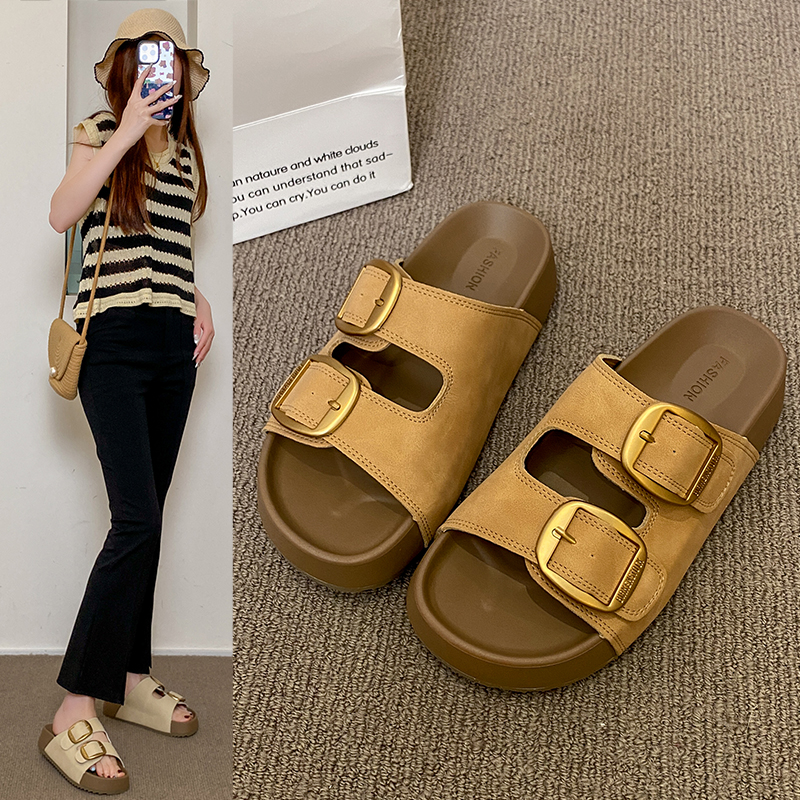 2022夏季凉拖鞋休闲鞋女鞋子拖鞋欧美英伦时尚松糕鞋