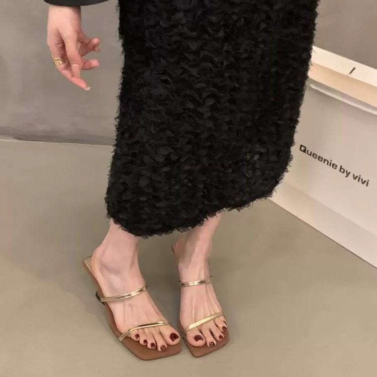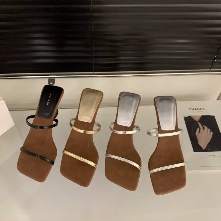 2022夏季凉拖鞋休闲鞋女鞋子拖鞋欧美英伦时尚粗跟