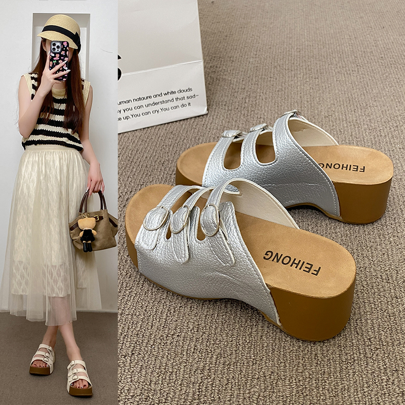 2022夏季凉拖鞋休闲鞋女鞋子拖鞋欧美英伦时尚松糕鞋