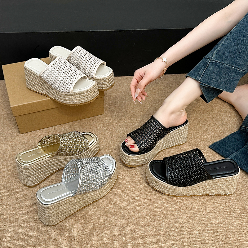 2022夏季凉拖鞋休闲鞋女鞋子拖鞋欧美英伦时尚坡跟