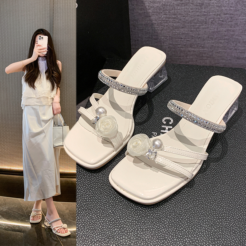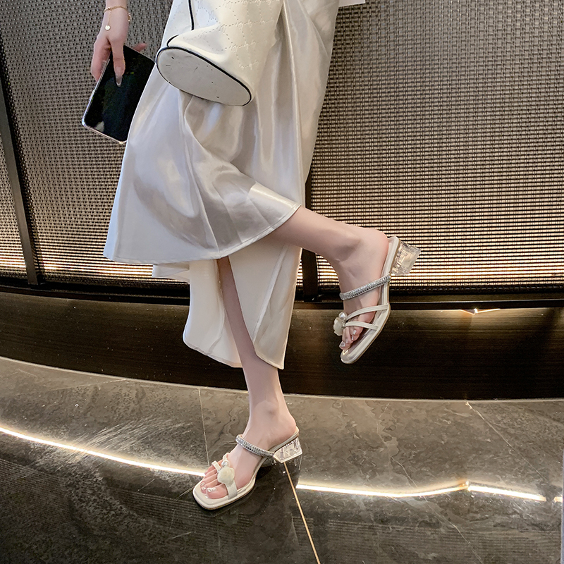 2022夏季凉拖鞋休闲鞋女鞋子拖鞋欧美英伦时尚粗跟