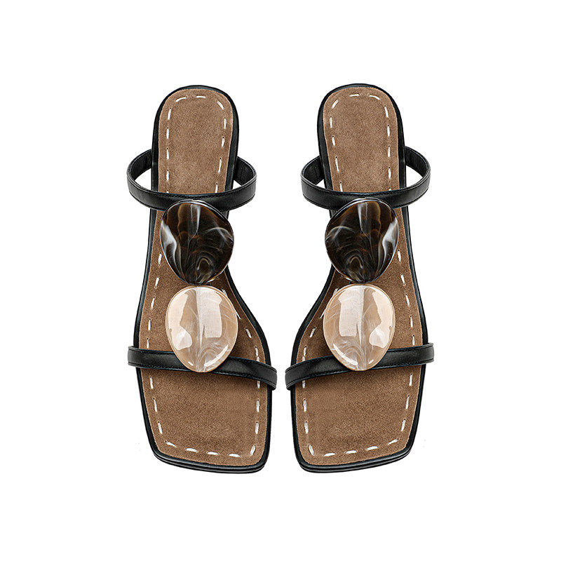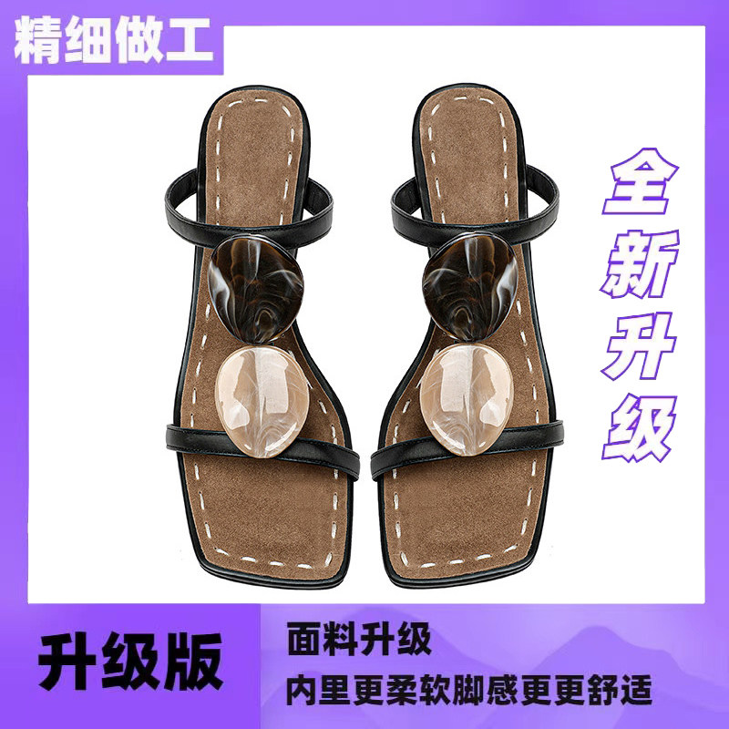 2022夏季凉拖鞋休闲鞋女鞋子拖鞋欧美英伦时尚粗跟
