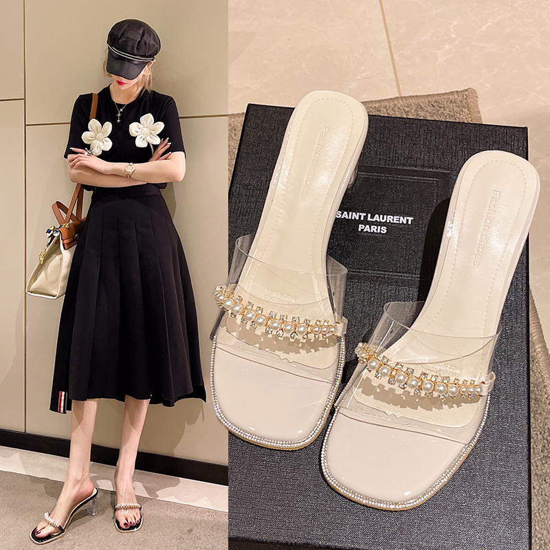 2022夏季凉拖鞋休闲鞋女鞋子拖鞋欧美英伦时尚粗跟
