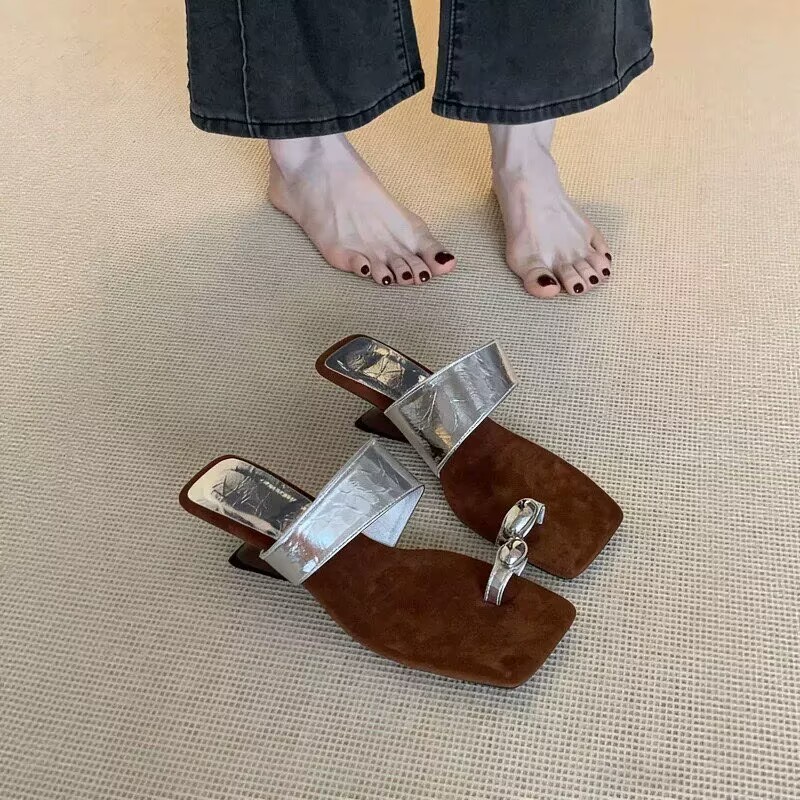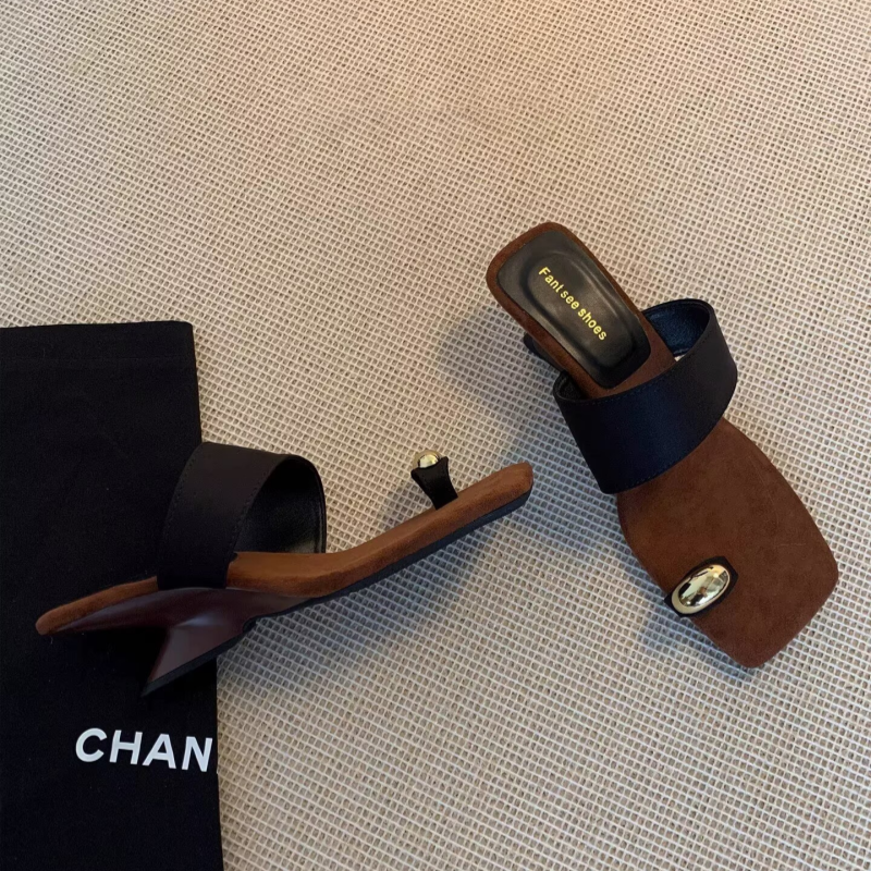 2022夏季凉拖鞋休闲鞋女鞋子拖鞋欧美英伦时尚粗跟