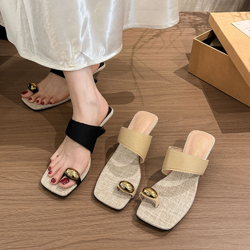 2022夏季凉拖鞋休闲鞋女鞋子拖鞋欧美英伦时尚粗跟