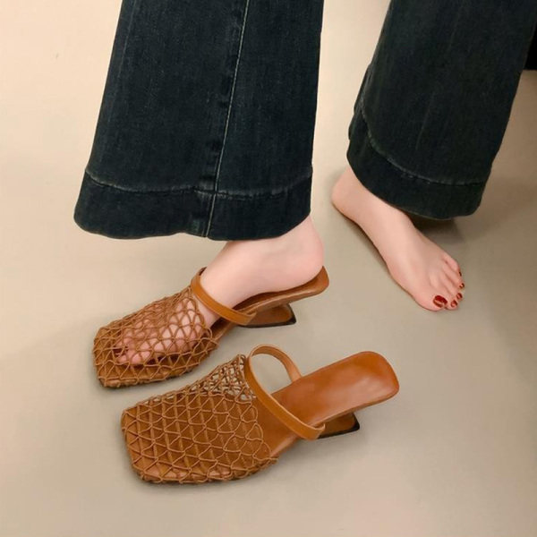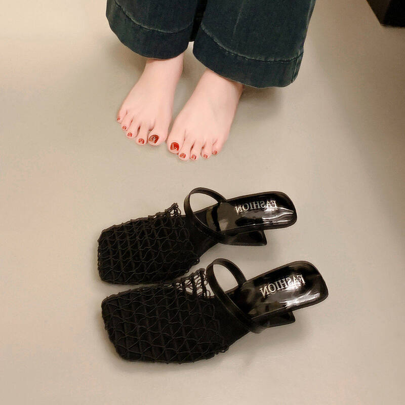 2022夏季凉拖鞋休闲鞋女鞋子拖鞋欧美英伦时尚粗跟
