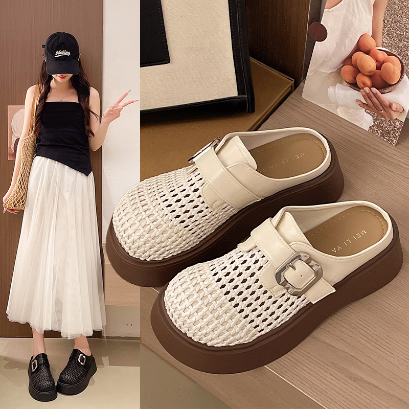 2022夏季凉拖鞋休闲鞋女鞋子拖鞋欧美英伦时尚松糕鞋