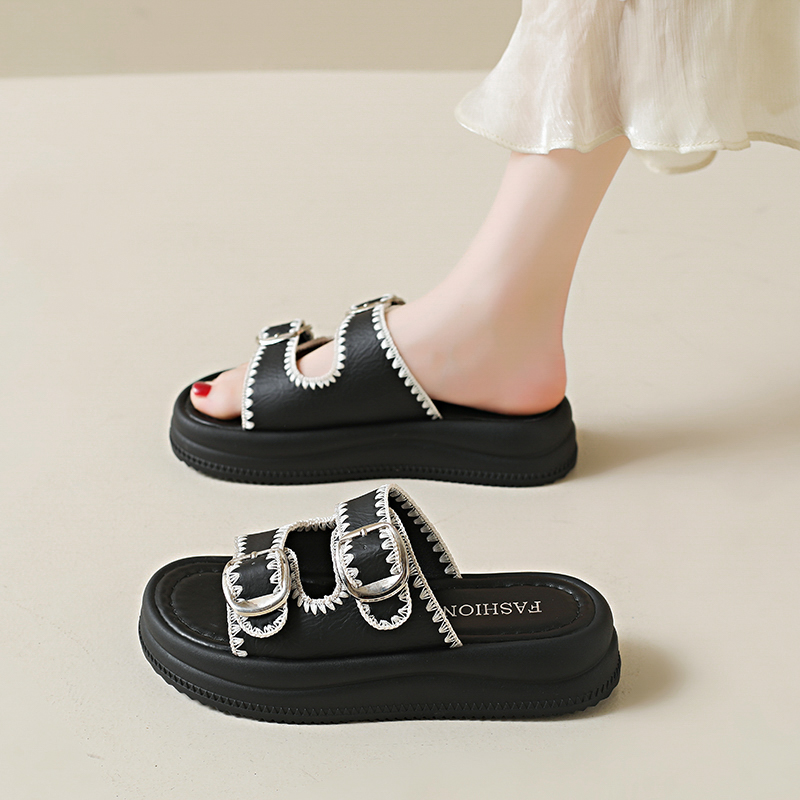 2022夏季凉拖鞋休闲鞋女鞋子拖鞋欧美英伦时尚松糕鞋