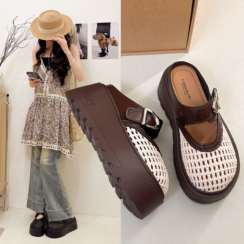 2022夏季凉拖鞋休闲鞋女鞋子拖鞋欧美英伦时尚松糕鞋