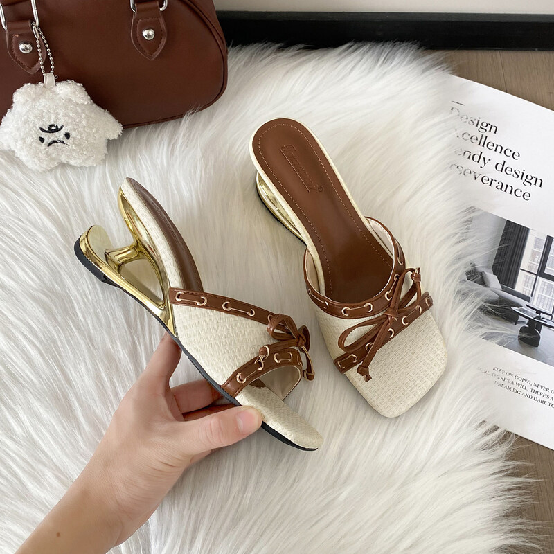 2022夏季凉拖鞋休闲鞋女鞋子拖鞋欧美英伦时尚坡跟
