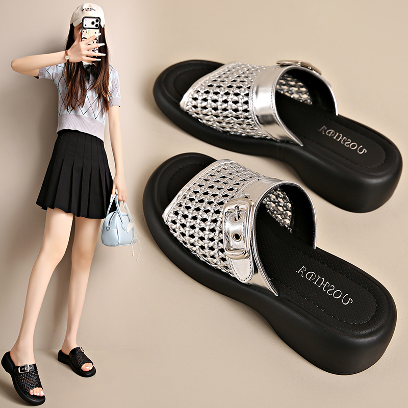 2022夏季凉拖鞋休闲鞋女鞋子拖鞋欧美英伦时尚松糕鞋