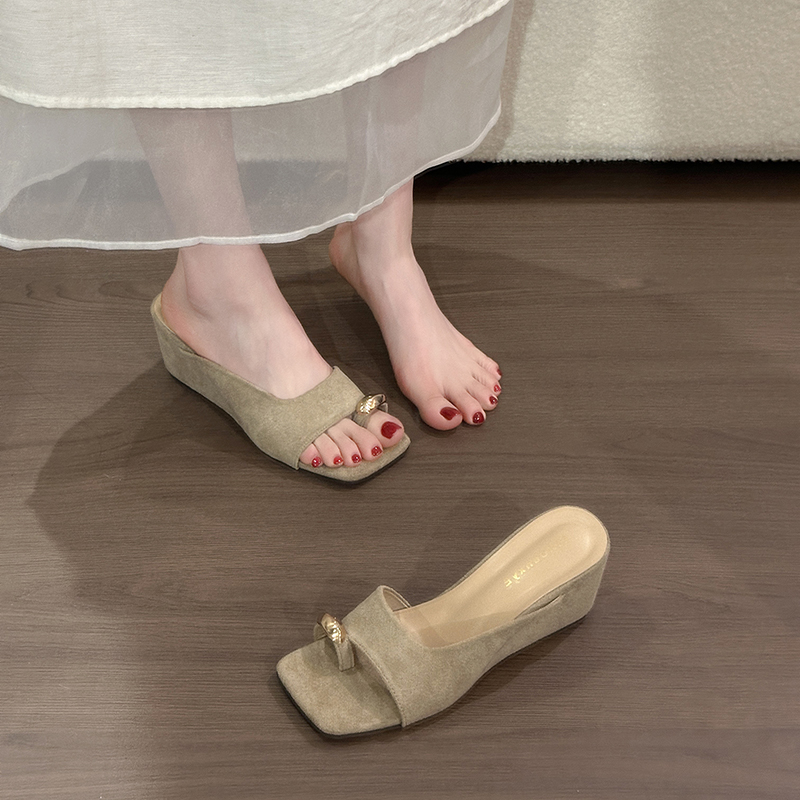 2022夏季凉拖鞋休闲鞋女鞋子拖鞋欧美英伦时尚坡跟