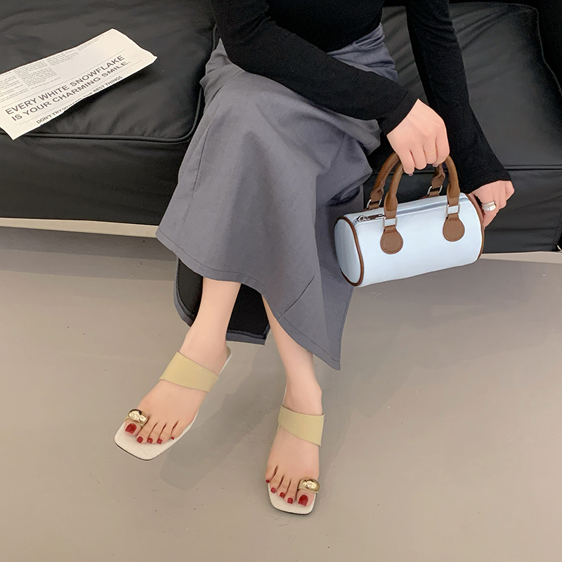 2022夏季凉拖鞋休闲鞋女鞋子拖鞋欧美英伦时尚粗跟