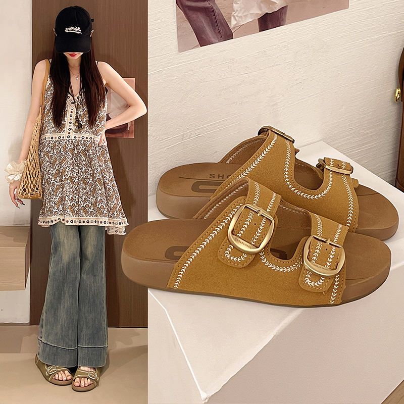 2022夏季凉拖鞋休闲鞋女鞋子拖鞋欧美英伦时尚松糕鞋