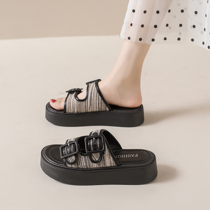 2022夏季凉拖鞋休闲鞋女鞋子拖鞋欧美英伦时尚松糕鞋