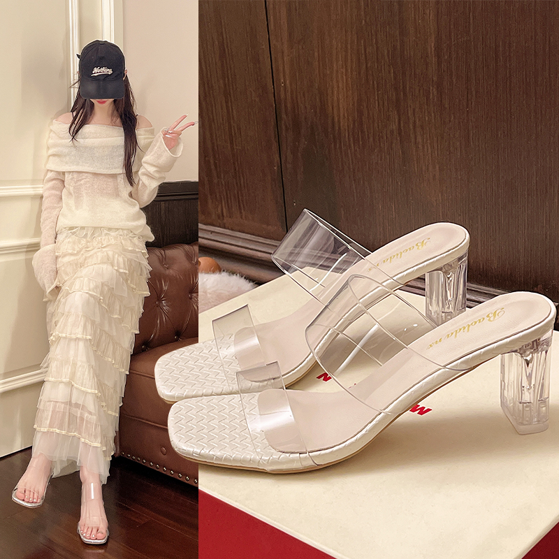 2022夏季凉拖鞋休闲鞋女鞋子拖鞋欧美英伦时尚粗跟