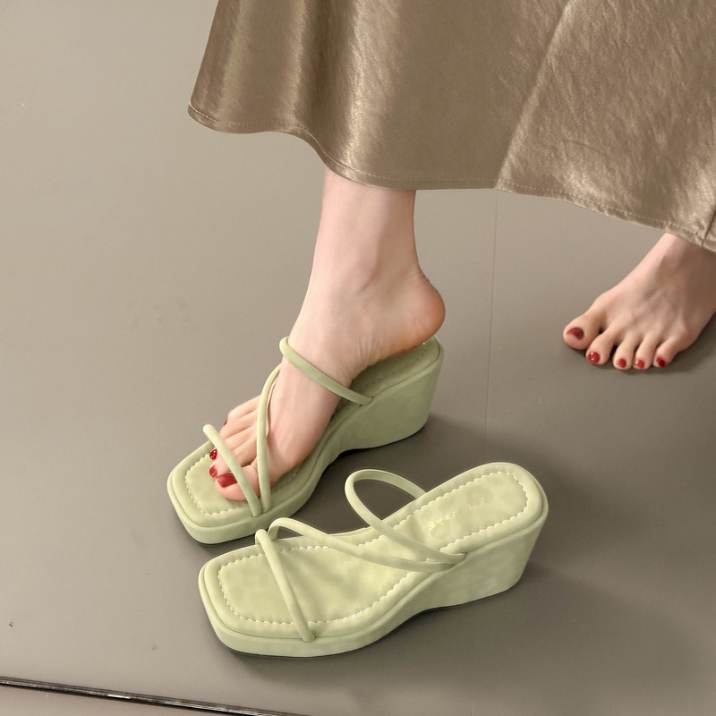 2022夏季凉拖鞋休闲鞋女鞋子拖鞋欧美英伦时尚坡跟