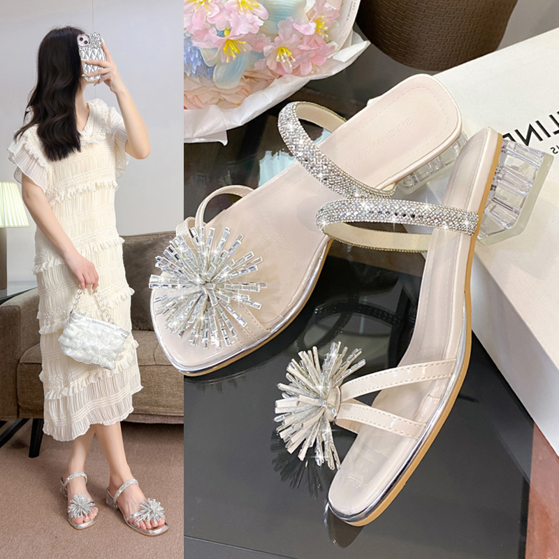 2022夏季凉拖鞋休闲鞋女鞋子拖鞋欧美英伦时尚粗跟