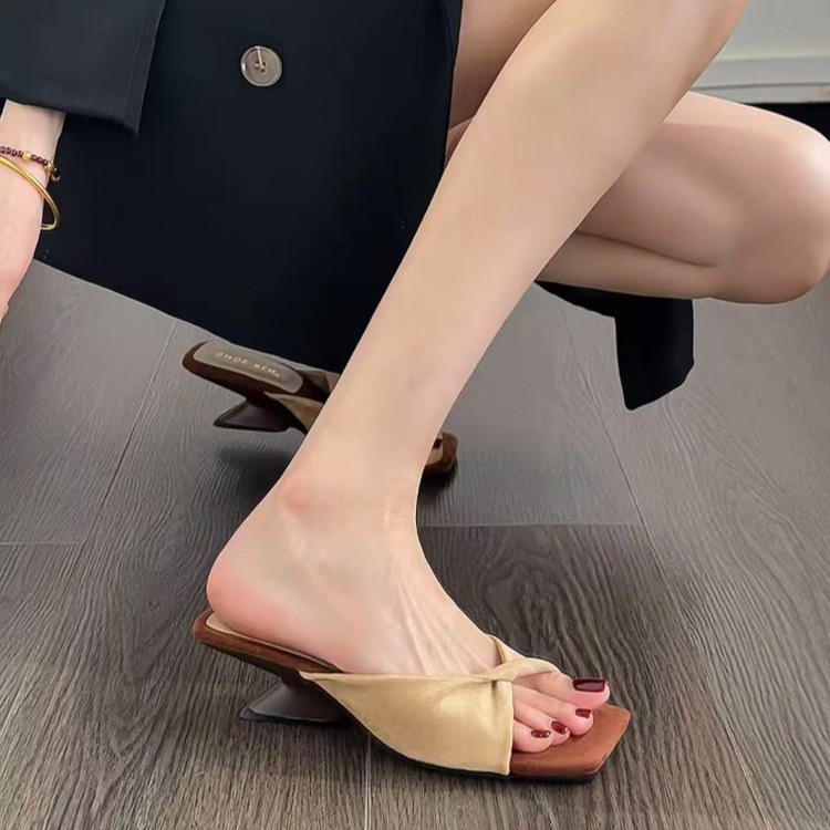 2022夏季凉拖鞋休闲鞋女鞋子拖鞋欧美英伦时尚粗跟